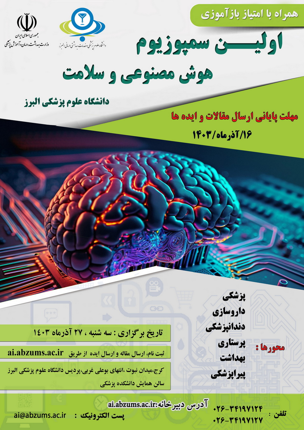 اولین سمپوزیوم هوش مصنوعی و سلامت در دانشگاه علوم پزشکی البرز روز سه شنبه مورخ 1403/09/27 در سالن همایش دانشکده پزشکی برگزار خواهد شد. هدف از این رویداد گردهم آوردن متخصصان، پژوهشگران و علاقه مندان به هوش مصنوعی و حوزه سلامت برای تبدیل دانش، ایده ها و تجربیات است. این سمپوزیوم شامل محورهای پزشکی، دندانپزشکی، داروسازی، پیراپزشکی، پرستاری و بهداشت بوده و دارای امتیاز بازآموزی می باشد. شرط شرکت در این سمپوزیوم ثبت نام از طریق لینک زیر می باشد.