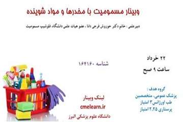 وبینار آموزشی مسمومیت با مواد شوینده و مخدرها با امتیاز آموزشی مداوم توسط متخصیصن مسمومیت این مرکز برگزار گردید.
