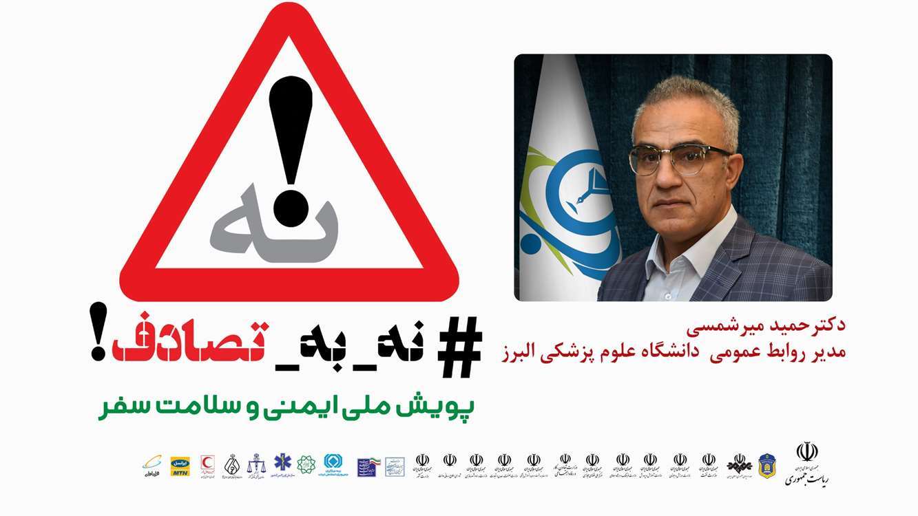 به گزارش روابط عمومی ، دکتر حمید میر شمسی ، مدیر روابط عمومی دانشگاه علوم پزشکی البرز گفت : " نه به تصادف" تنها یک شعار نیست، بلکه تعهدی برای حفظ جان خود و دیگران است.