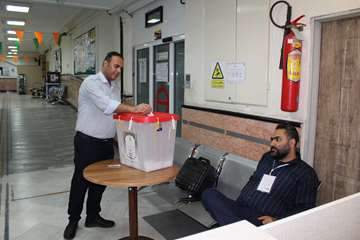 صندوق سیار جمع آوری آرا در مرکز آموزشی درمانی کوثر به همراه ناظرین صندوق در این مرکز حضور داشتند ، که با استقبال پرشور مراجعین و همکاران ، جمع آوری آرا توسط ناظرین صندوق انجام گردید .