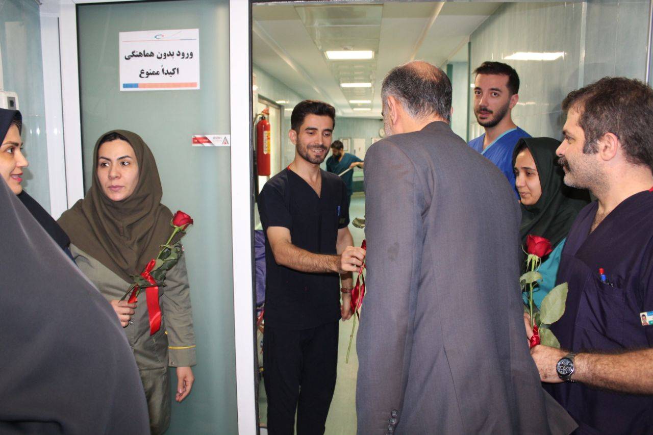 به گزارش روابط عمومی ، به مناسبت میلاد حضرت زینب کبری (س) و گرامیداشت مقام پرستار ، اعضای شورای اسلامی شهر کرج و هیئت همراه در کنار ریاست بیمارستان آقای دکتر نصیری و مدیر بیمارستان آقای حاتمی و مدیرت پرستاری خانم تقی پور و مدیر حراست آقای تقی زاده با حضور در بخش های مختلف مرکز آموزشی درمانی کوثر این روز را به پرستاران تبریک گفتند و با اهداء شاخه گل و شیرینی از زحمات شبانه روزی آنان تقدیر و تشکر کردند.